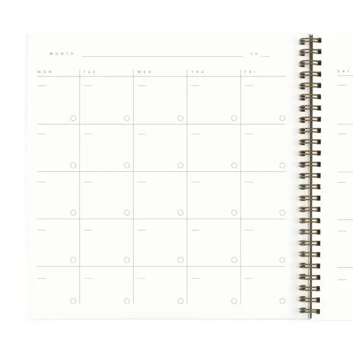 Celebrate the magic in everyday moments with this simple and soothing open-dated planner designed to make the ordinary a little more intentional. Combining minimal, spacious function with a touch of geometric playfulness.