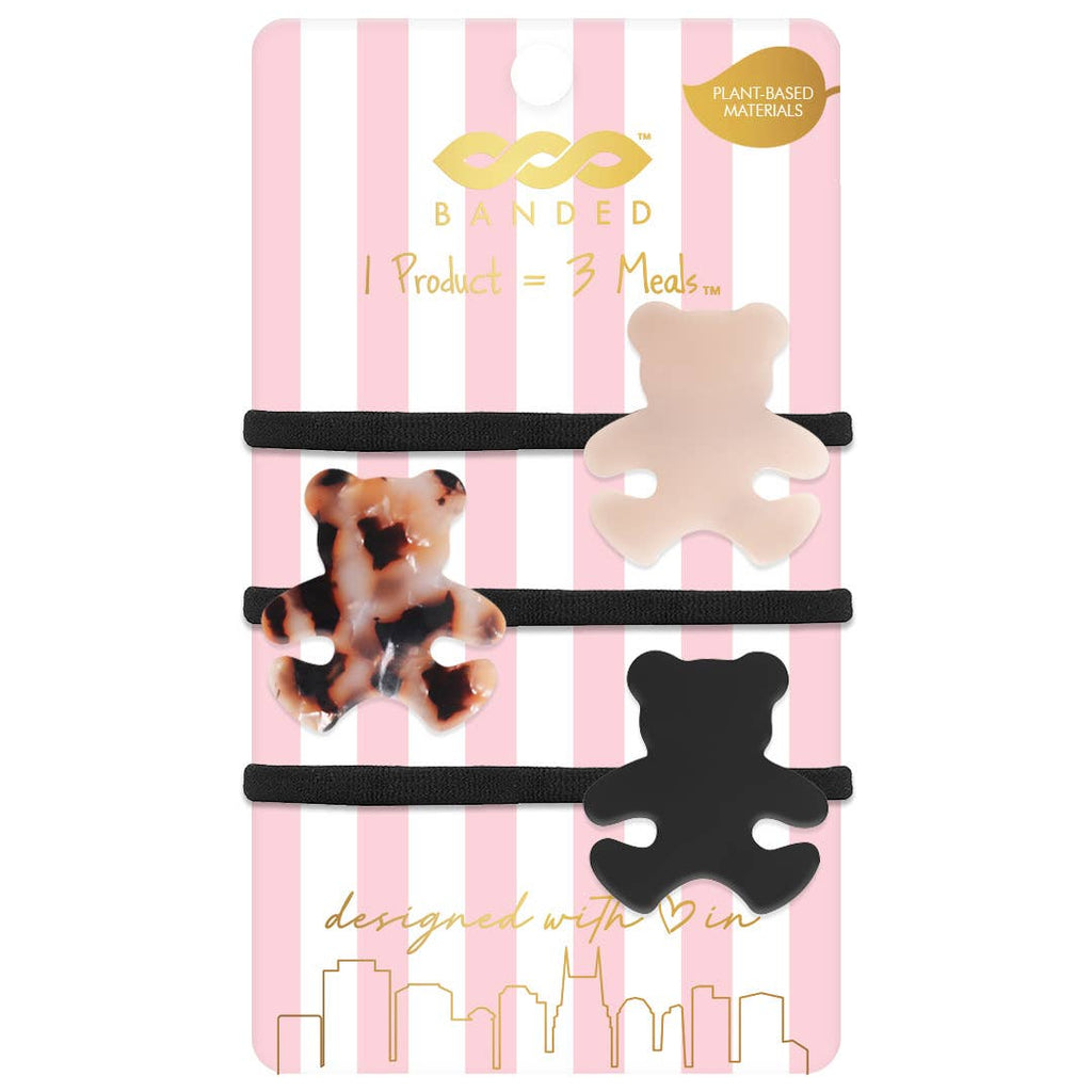 Hey Goldilocks, these hair elastics are "just right"! Featuring off-white, marbled brown, and black bears, these adorable elastics are neutral enough to make a cute addition to any and every outfit.