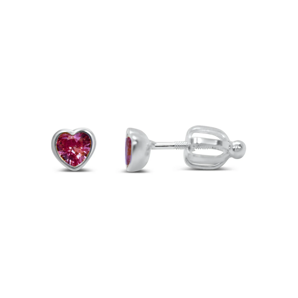 Tweens + Teens Earrings: Tiny Ruby Crystal Silver Heart Studs
