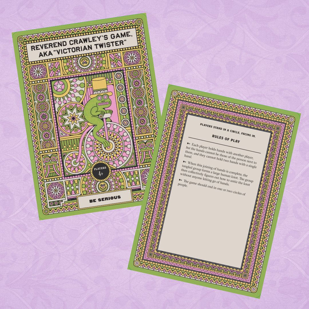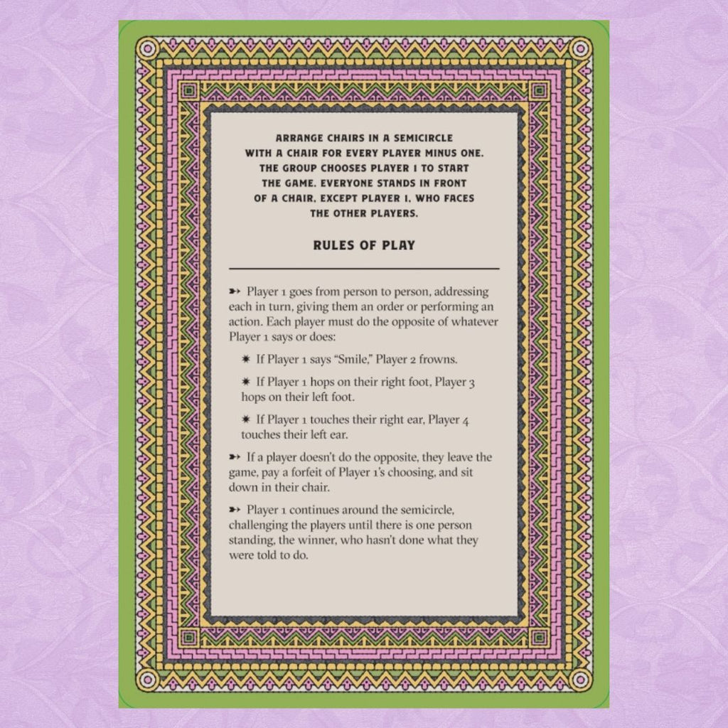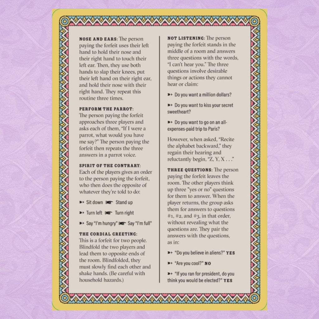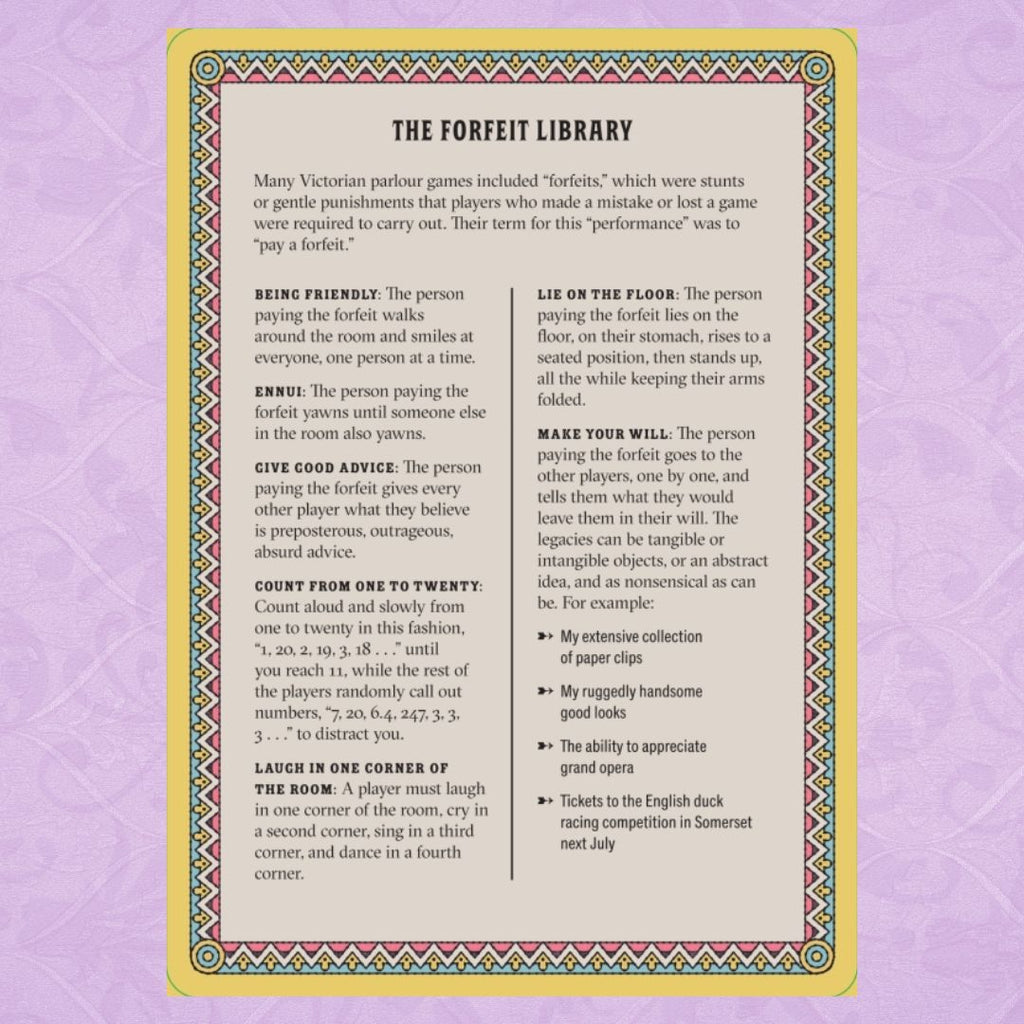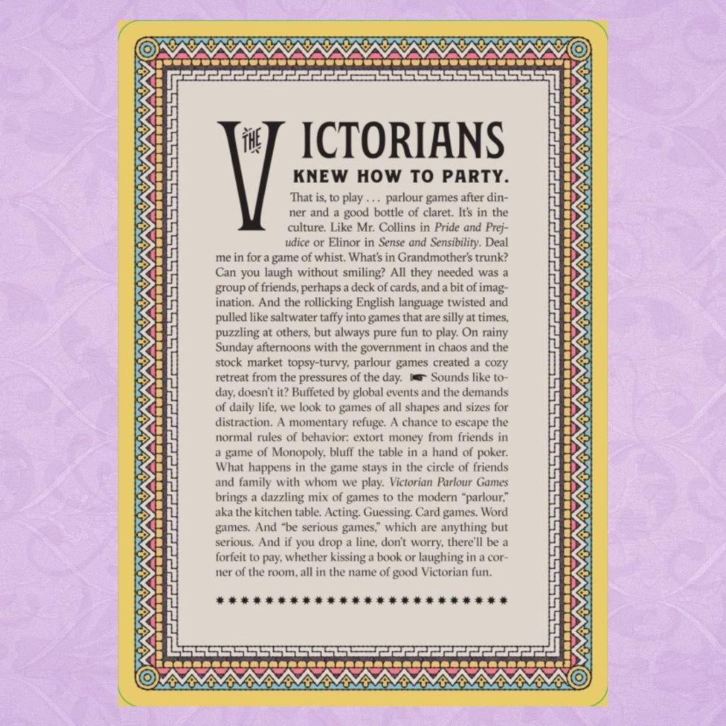 Deal yourself in for a good time with this collection of games enjoyed in Victorian parlors! The box includes rules to fifty games that can be played without any extra equipment (except maybe a deck of cards for games like Whist). Each game works for two or more players, with most designed for groups.