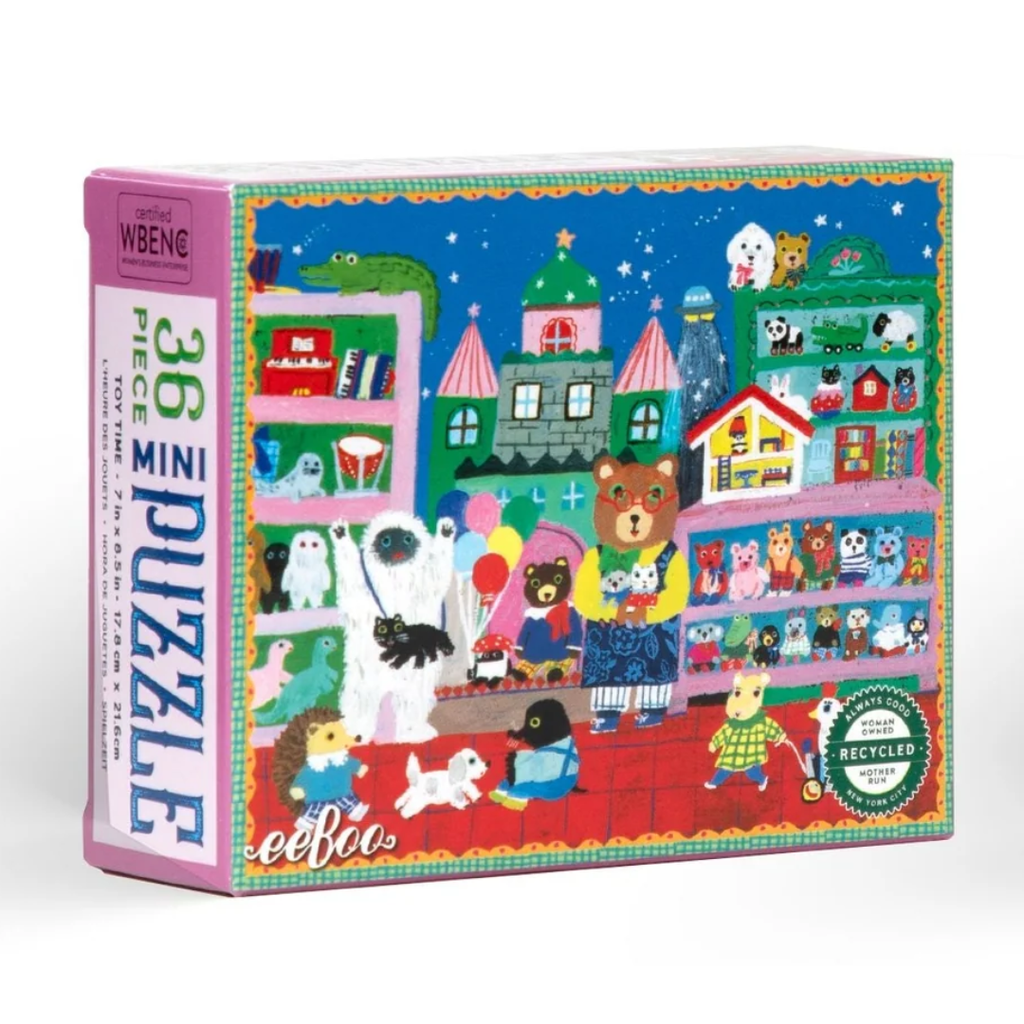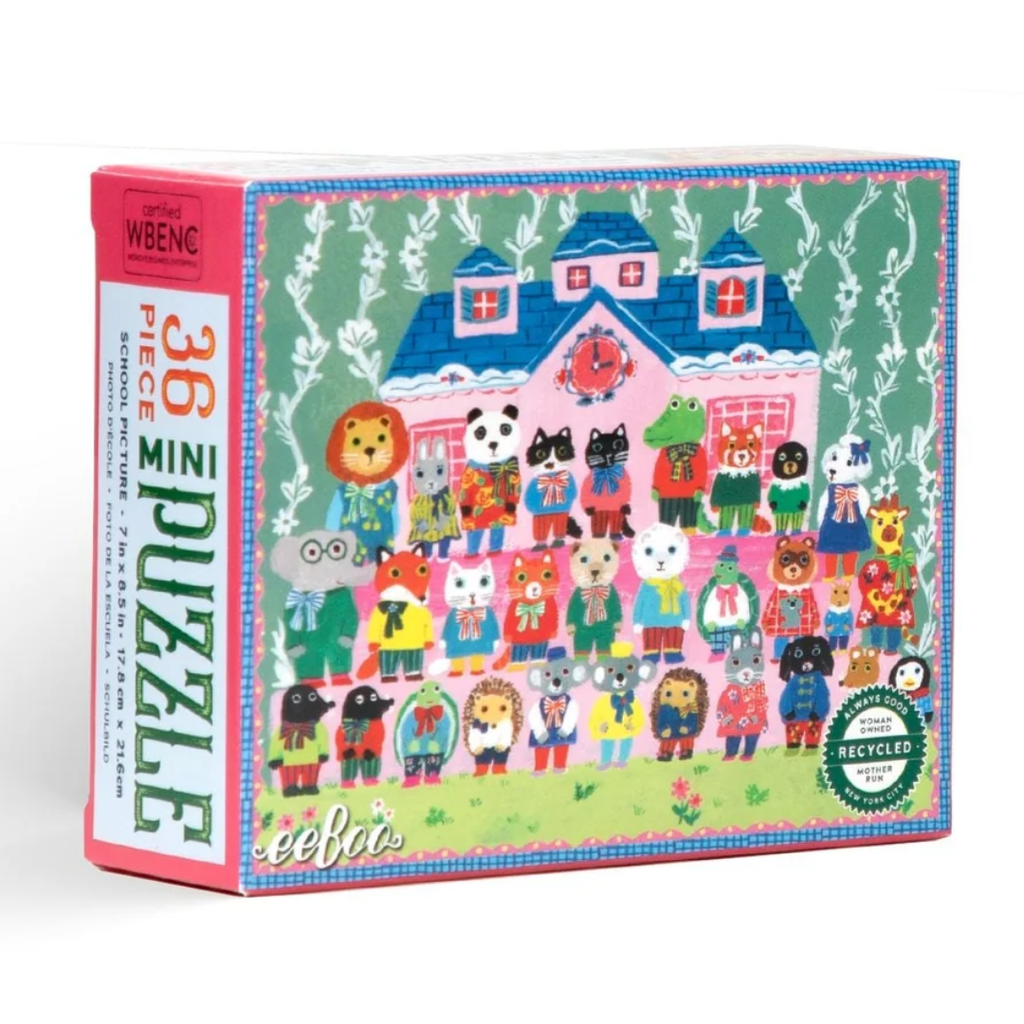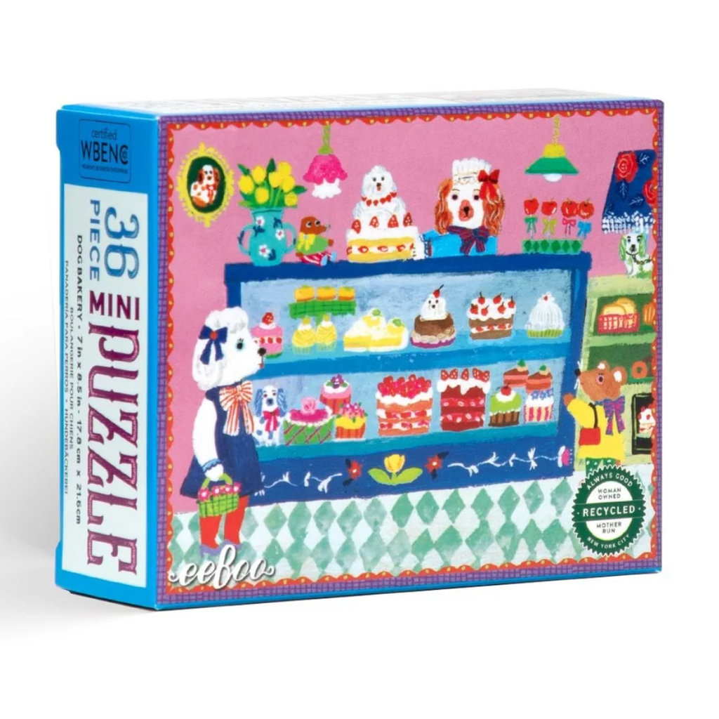 Embark on a pocket-sized adventure with eeBoo’s Mini 36 Piece Jigsaw Puzzles. These four mini puzzles feature sweet and gentle artwork from Yumi Kitagishi: Dog Bakery, Cake Party, Toy Time, & School Picture. Perfect for birthday parties, stocking stuffers, and easter baskets.
